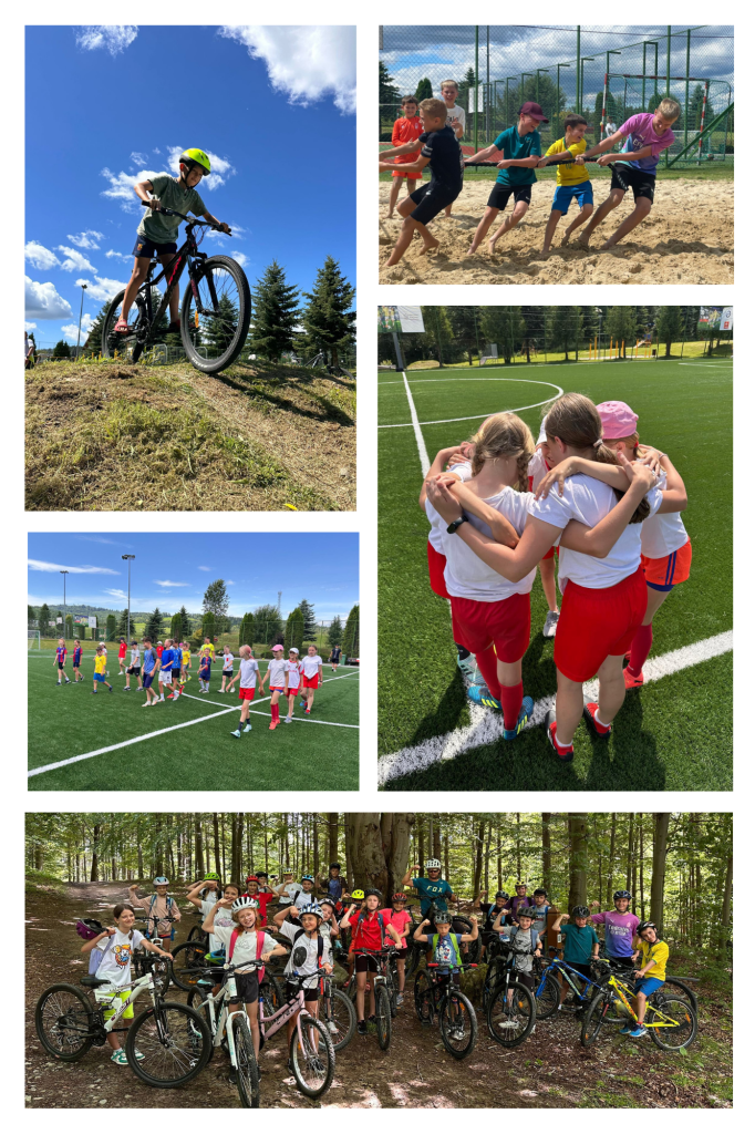 Tydzień sportowy był prawdziwą eksplozją aktywności: dzieci uczestniczyły w treningach z trenerami z Akademii Sportu i Zdrowia Pantera, poznając tajniki bezpiecznej jazdy na rowerze, techniki i zasady odpowiedzialnego poruszania się na dwóch kółkach – oczywiście w kasku! Nie zabrakło także wiedzy o zdrowym odżywianiu, praktycznych wskazówek, jak dorastać bezpiecznie i… smacznie. Codzienność wypełniały gry retro, siatkówka plażowa, konkurencje sprawnościowe i…emocje jak na mundialu, czyli własne Mistrzostwa Świata w piłce nożnej!